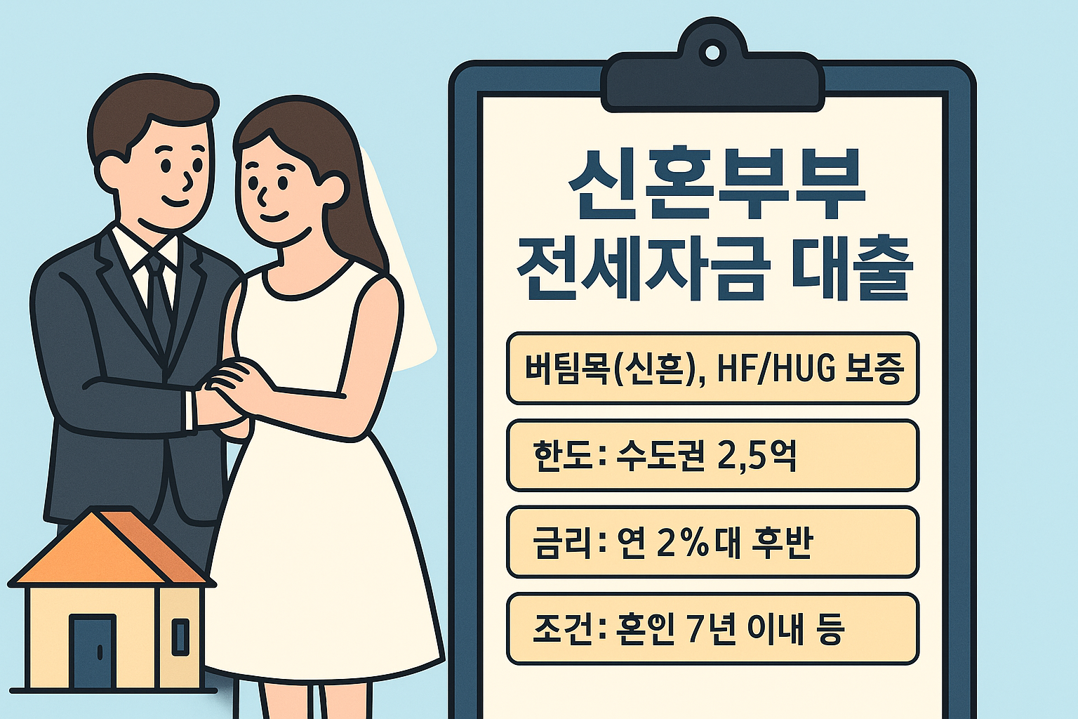 2025년 신혼부부 전세자금 대출 완전 가이드|버팀목(신혼)·HF/HUG 보증·한도·금리·자격·실전 계산정보 2025. 9. 5. 11:35반응형
